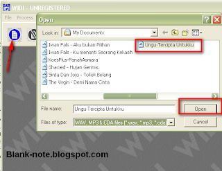- Lalu klik icon teks kosong>> cari musiknya >> klik open (formatnya bisa *.wav, cda, mp1, dll)>>tunggu.